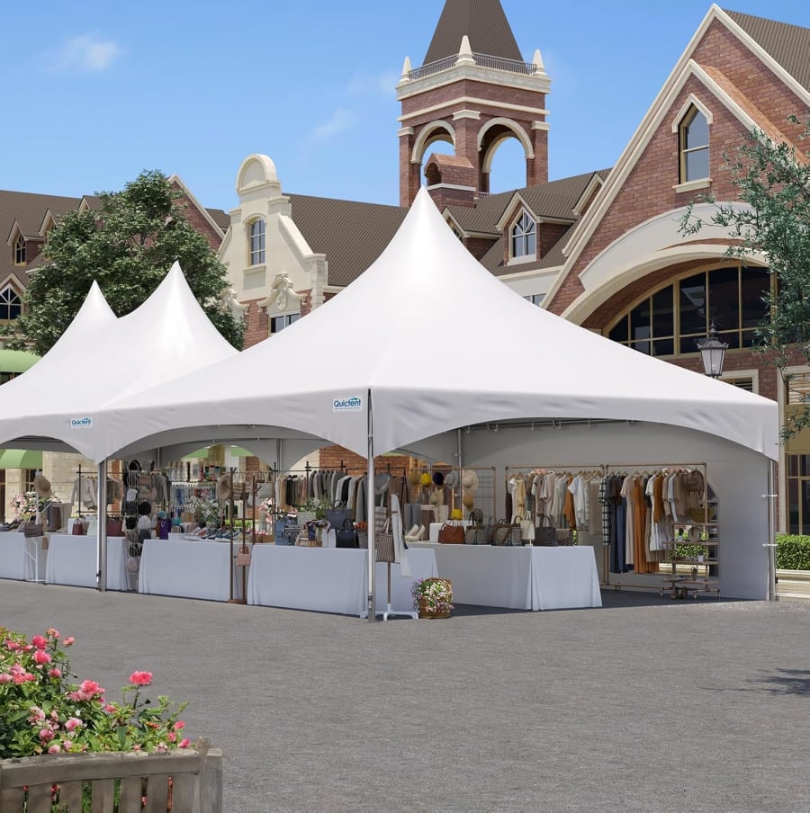 This high peak frame tent is a showstopper with its elegant design and versatile layout. Whether you're hosting a wedding, birthday party, graduation celebration, or any other special event, this tent provides the perfect setting for your guests to enjoy. Its spacious 20 x 20 dimensions offer ample room for seating, dining, dancing, and more, ensuring that your event is a success.